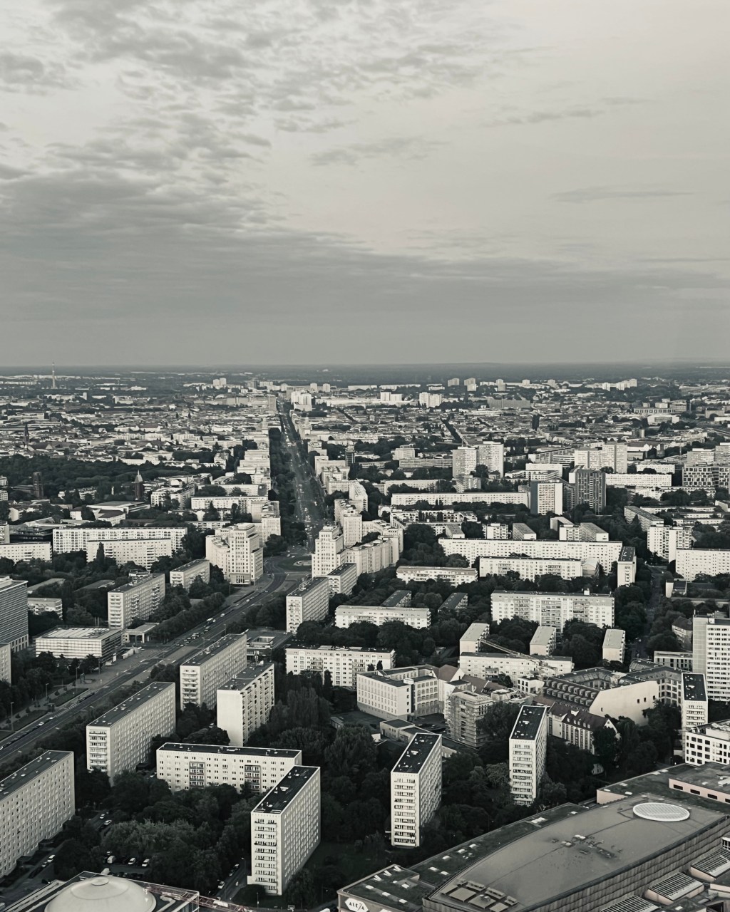最后在地陪的建议下没有直接坐地铁回酒店,于是晃着晃着就到了柏林电视塔。面对昂贵门票犹豫半天,秉持着来都来了的原则还是冲了。和Barry,Freeman与Alvin(Freeman室友)。被资本做局了,好像没CN Tower大,观景也一般般。但对着地图辨认建筑很有趣味性,看到那条保留着苏联风格的大街,纯白的方块大楼。
